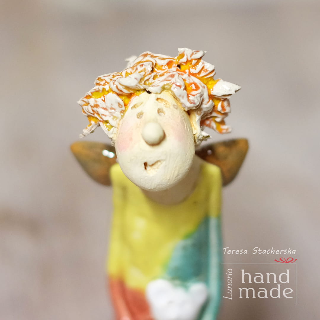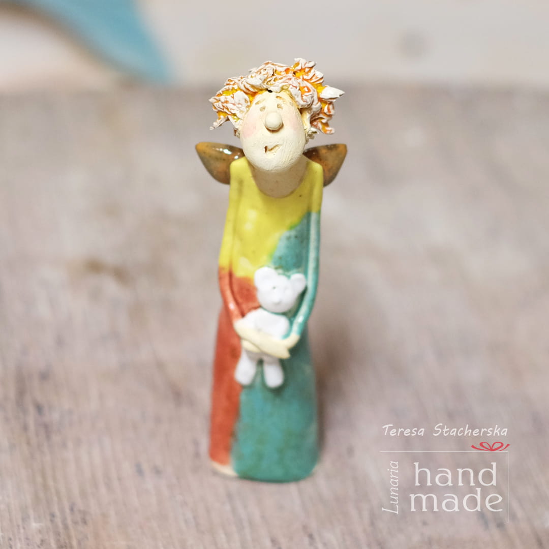 Funny hair ceramic angel - white teddy bear (1)