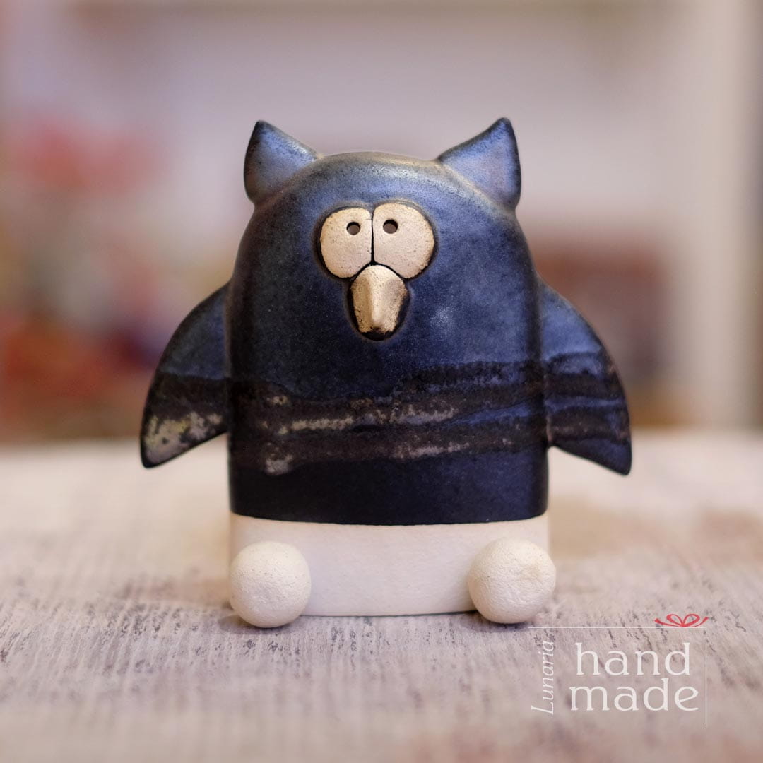 Ceramic owl - black - handmade