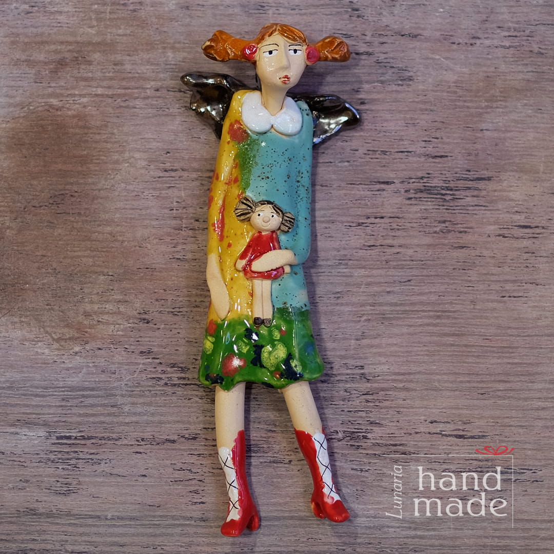 Funny hair - ceramic angel - doll - handmade