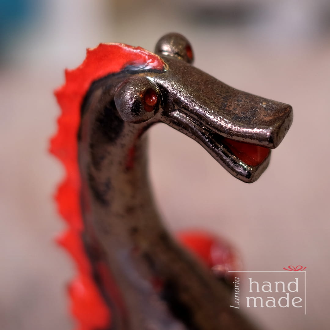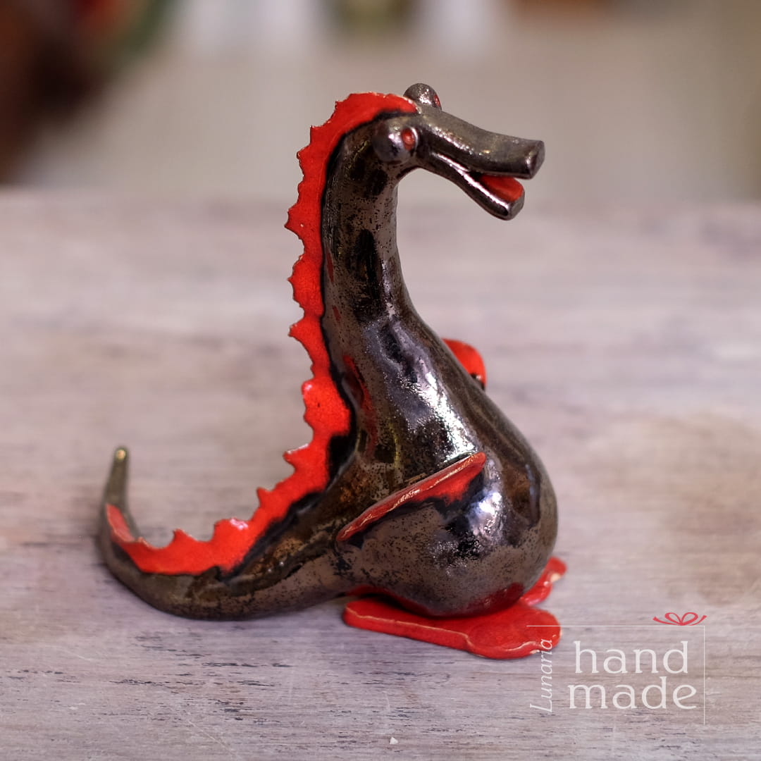 Wawel dragon - ceramic - graphite - red - handmade
