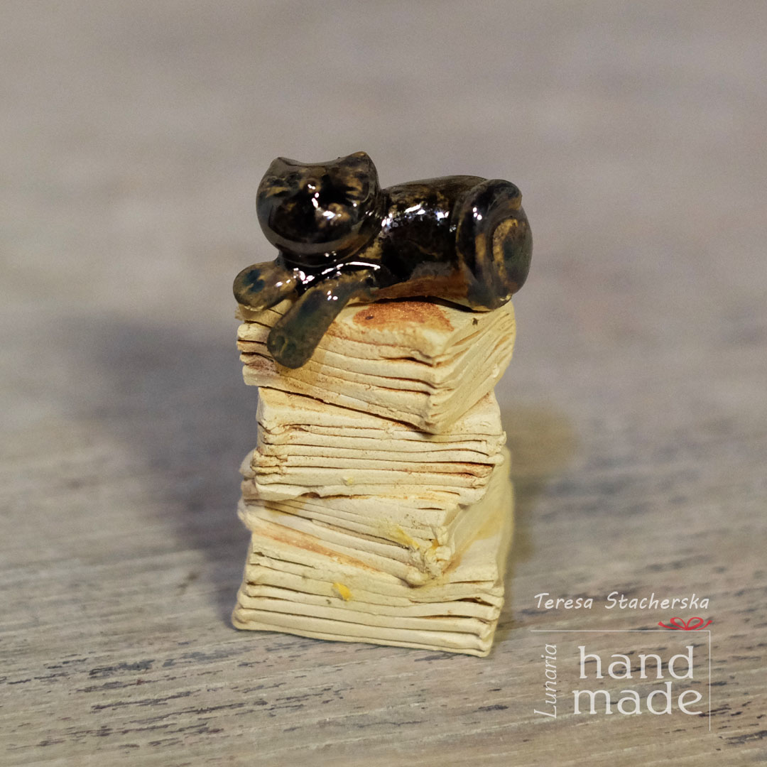 Ręcznie robione ceramiczne książki z glinianym kotem wykonanym z gliny.