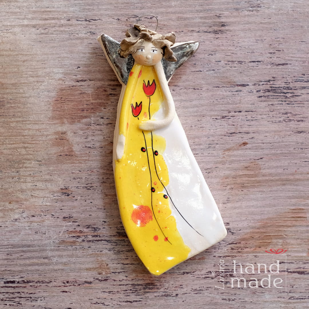 Ręcznie robiona ceramiczna figurka aniołka do zawieszenia.