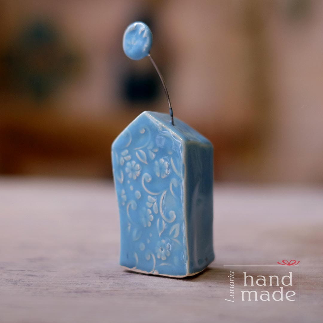 Ręcznie robiony ceramiczny domek w kwiatowy wzór.