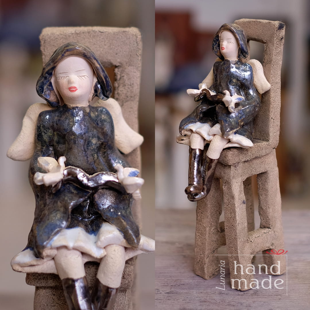 Ręcznie robiona figurka anioła-dziewczynki z książką.