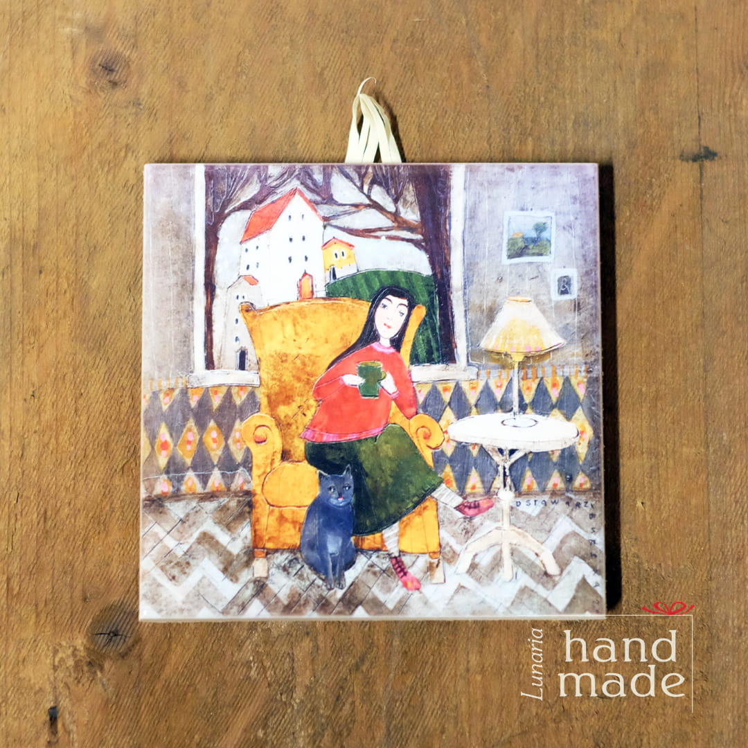 Kafelek z kolorowym obrazkiem został wykonany w Polsce dla sklepu Lunaria