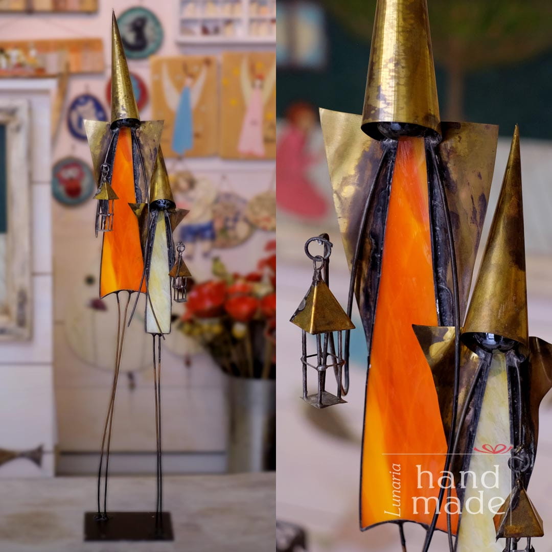 Latarnicy ze szkła witrażowego - pomarańczowy i żółty