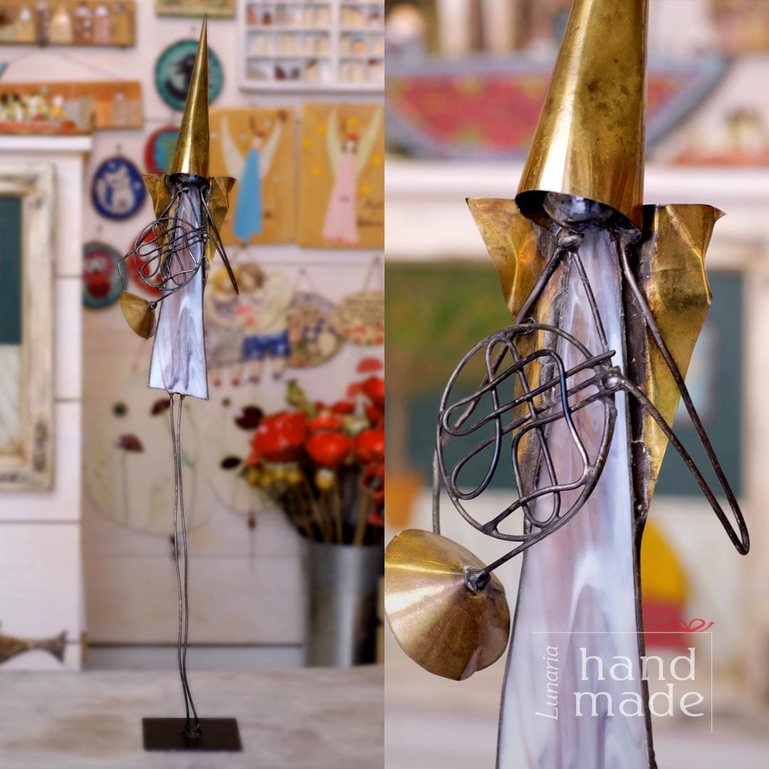 Muzykant z trąbką wykonany ręcznie ze szkła witrażowego.