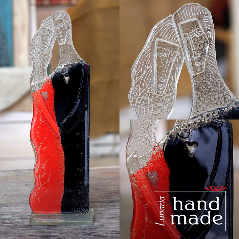 Czarno-czerwona para zakochanych wykonana ze szkła.