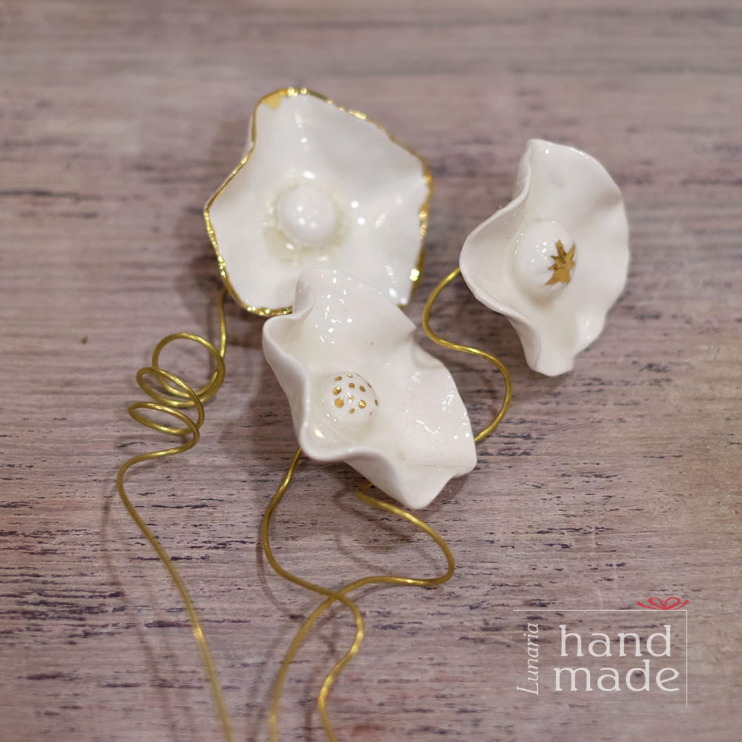 Ręcznie robione kwiaty porcelanowe – 3 sztuki.