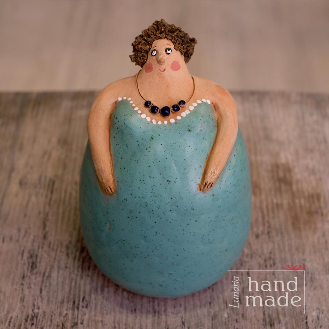 Ręcznie robiona ceramiczna figurka śpiewaczki w kolorze turkusowym.