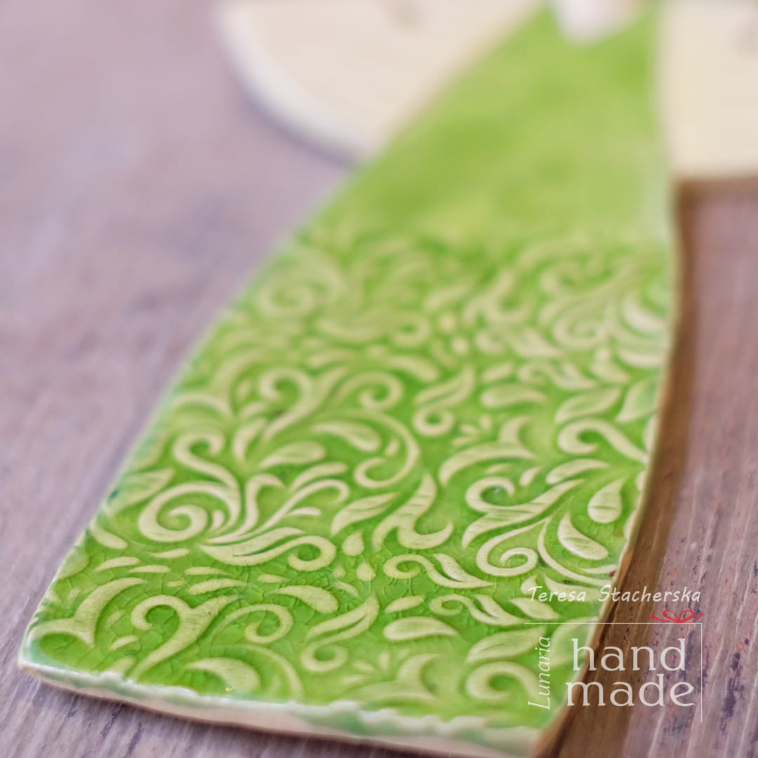 Ten anioł jest wykonany z gliny z drobnym szamotem. Szkliwo jakiego użyłam nazywa się Glory Day. Pracownia w której tworzę znajduje się w Krakowie. Miejsce to stworzyłam od początku sama i piszę o tym na blogu, Jeśli Cię to interesuje, zapraszam do lektury!